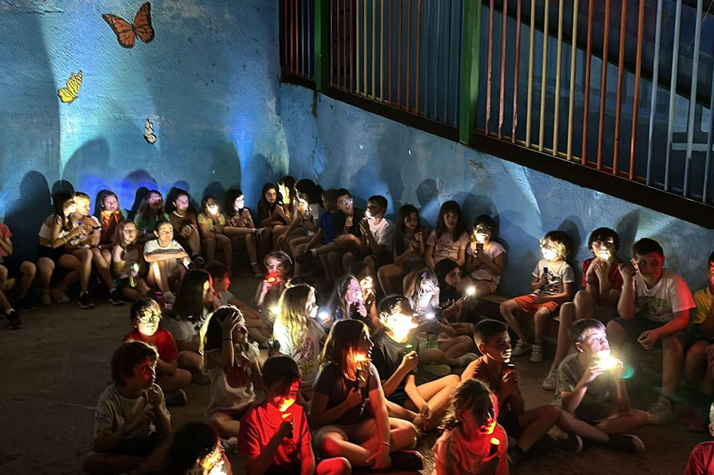 Acción y movimiento son protagonistas de la velada. El momento del juego nocturno es importantísimo. Los niños/as no sólo dan rienda suelta a su imaginación y superan un posible miedo a la oscuridad, también viven un momento de cohesión muy importante. Se ayudan los unos a los otros, mayores a pequeños, trabajan en equipo, se apoyan, y sobre todo, se divierten. Es un momento imprescindible de nuestros campamentos de verano para niños, previo a la relajación de antes de irnos a dormir.