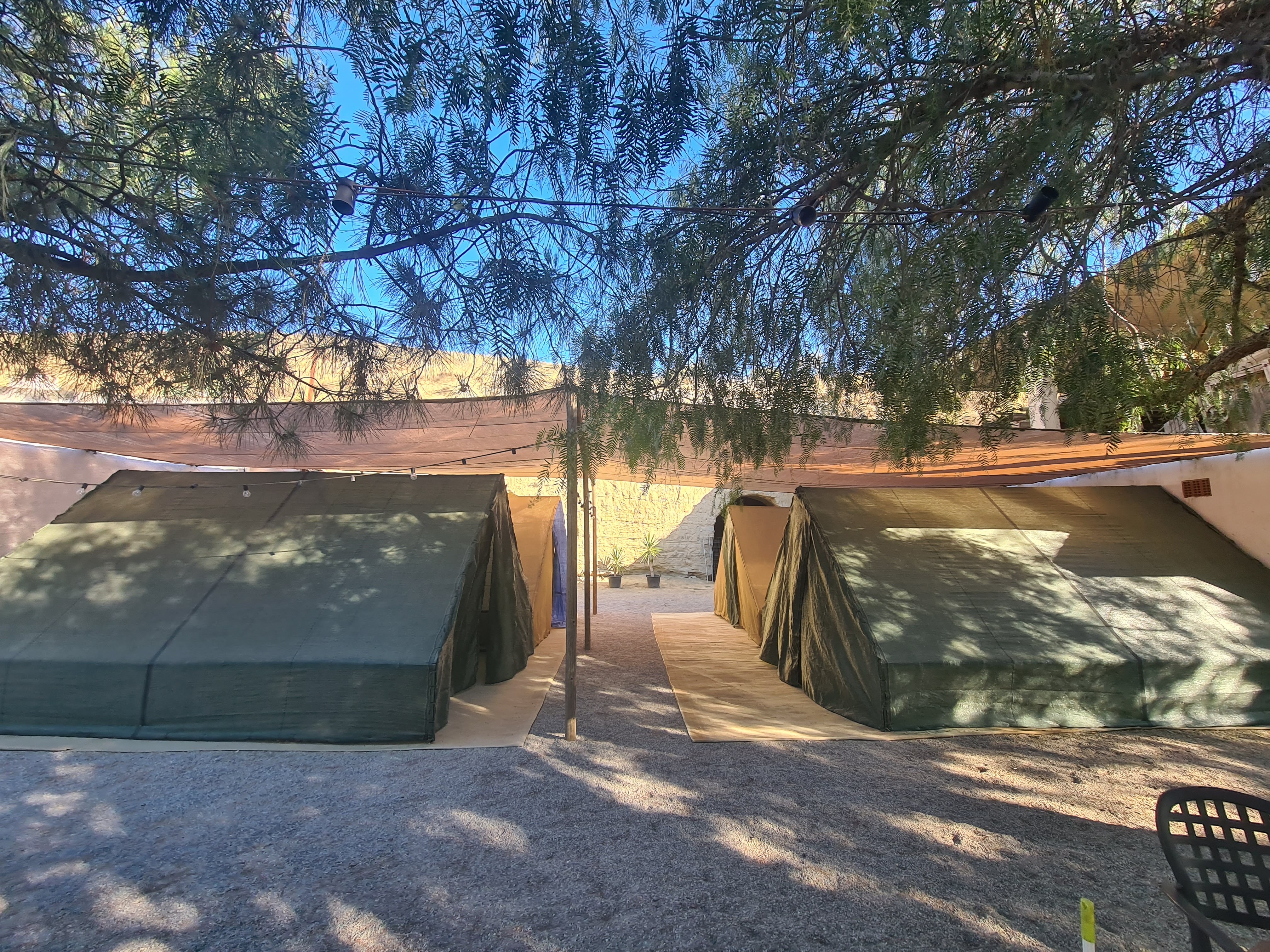Para dormir utilizamos las tiendas de campaña. Disponemos de alguna habitación doble libre, aunque las tiendas son las favoritas por muchos motivos, entre otras cosas se duerme a muy buena temperatura, la convivencia, la experiencia.