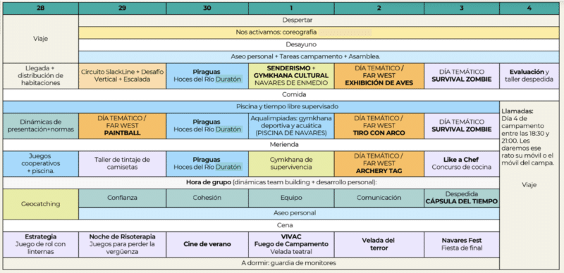 - Ratio: 1 monitor cada 8 campers
