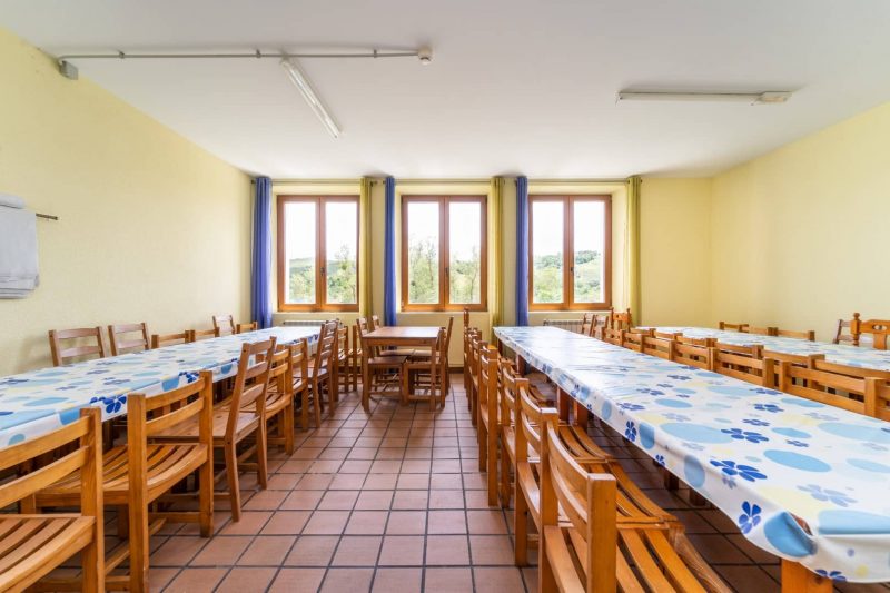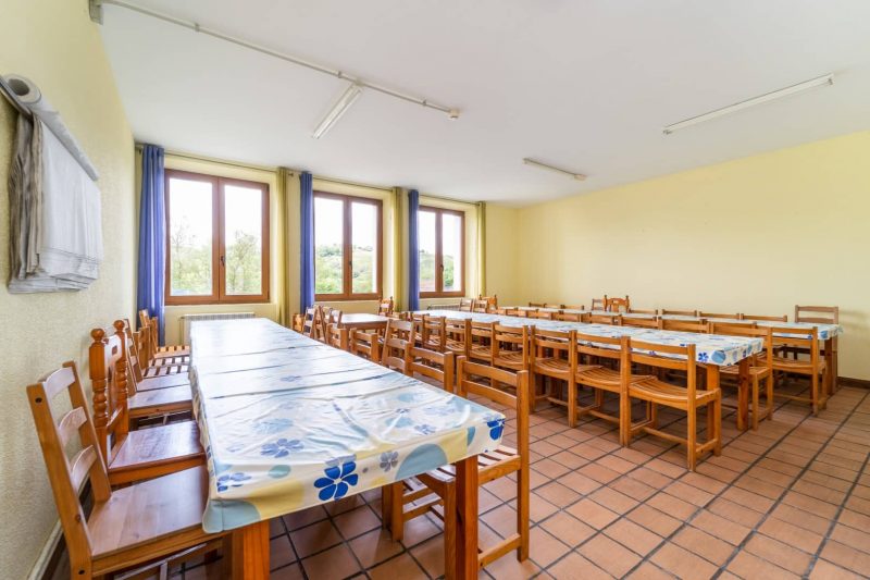 Dividida en dos plantas, en la inferior nos encontramos con recibidor, aseos, aula de usos múltiples, comedor y cocina muy completa, totalmente equipada para grandes grupos.