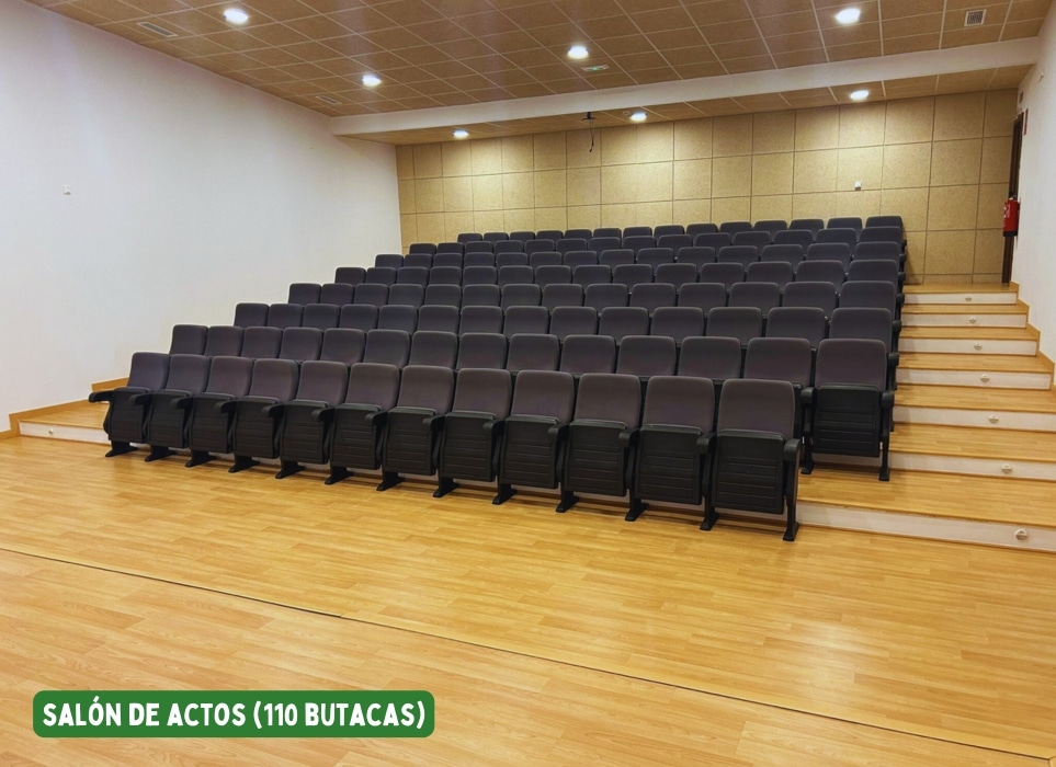 - Salón de actos para 111 personas en butacas reclinables (sala de cine)