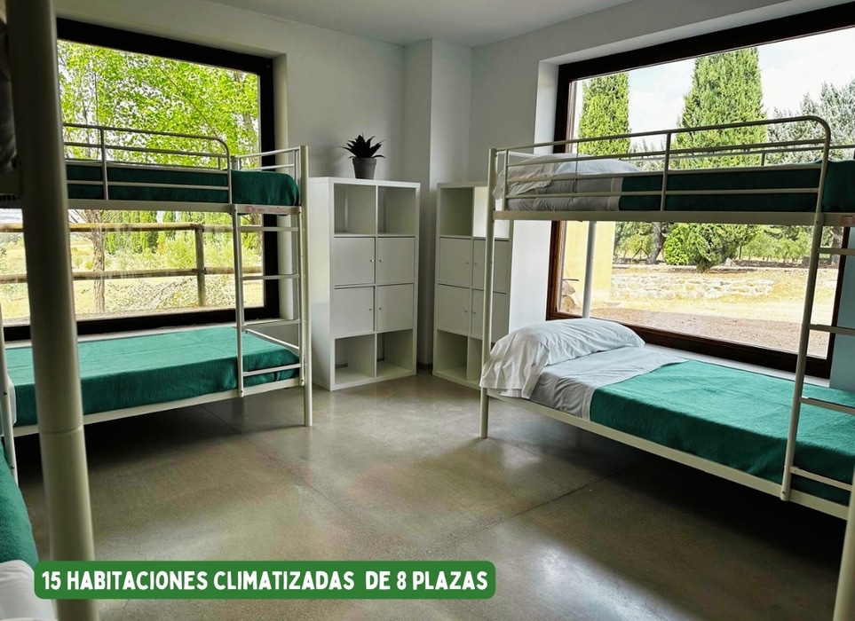 - Planta baja: 7 habitaciones de 8 plazas con baño y duchas en el exterior