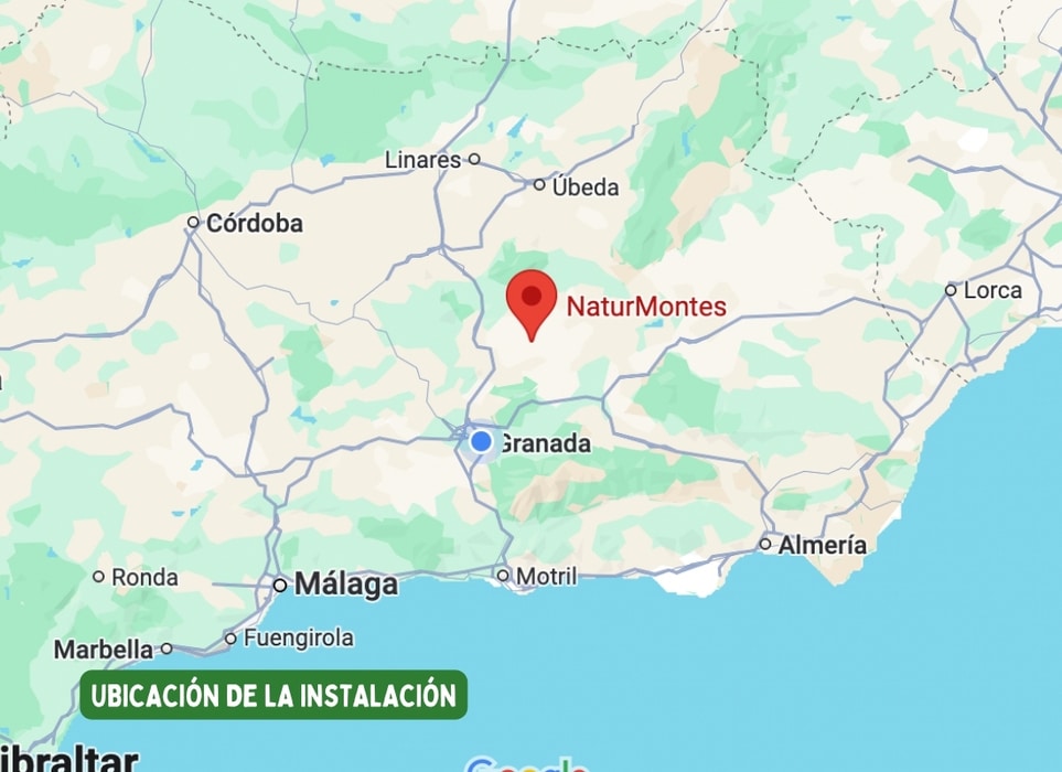 La instalación se encuentra entre Guadahortuna y Torrecardela (Granada) en un entorno natural rodeada de campos de cereales y bosque de encinas.La finca está situada en el norte de la provincia de Granada y pertenece a la comarca de los Montes Orientales.