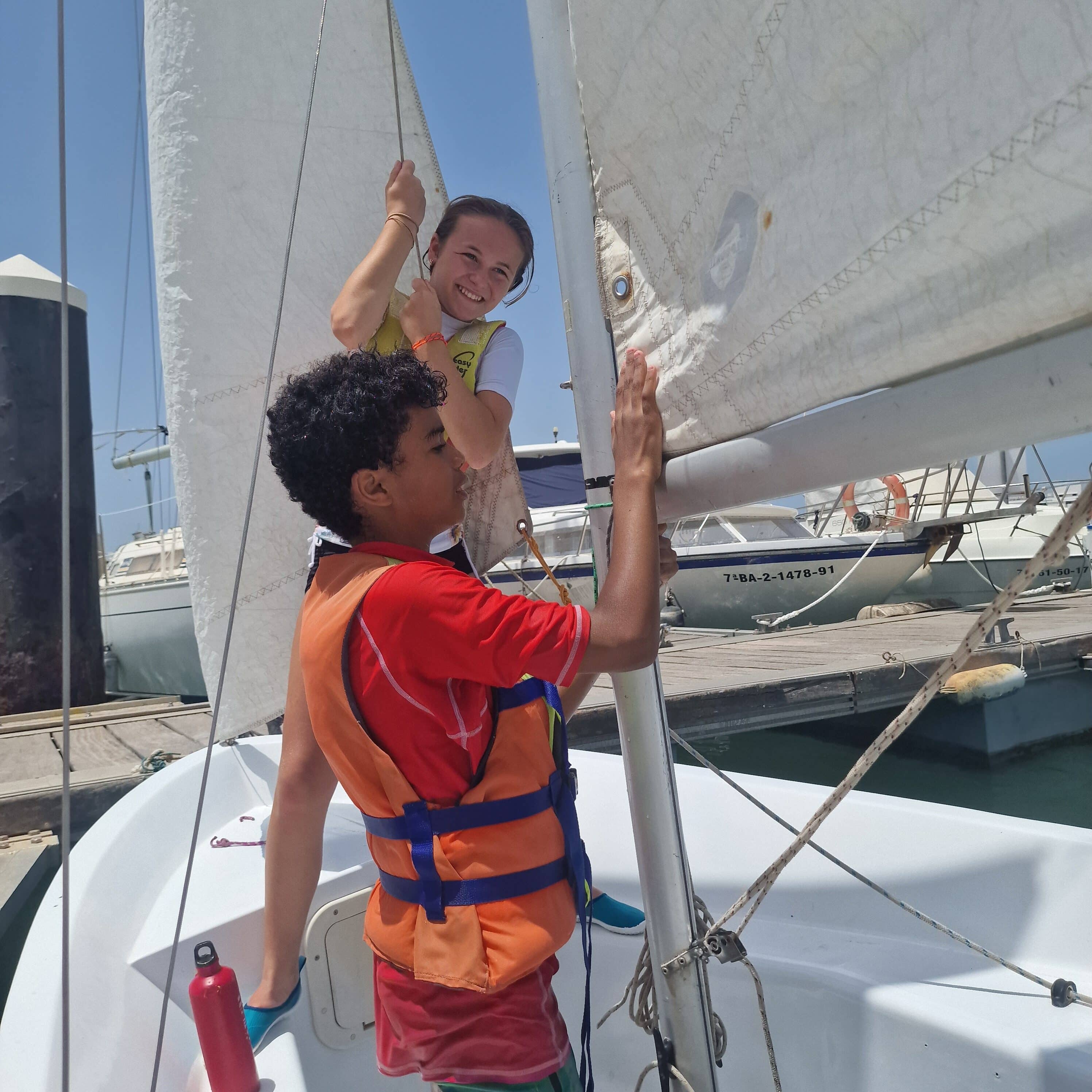 En la zona náutica, realizaremos las actividades de vela diarias, además de experimentos, talleres y muchas otras sorpresas a resguardo del sol que se irán llevando a cabo semana a semana. A medio día comeremos en el complejo.